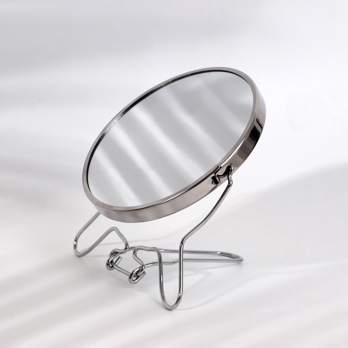 Зеркало настольное, с увеличением х2, двустороннее, 9×14.5 см, (d=7.7 см), металлическое 3 фото