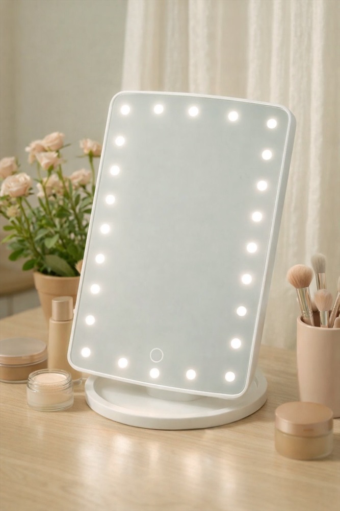 Зеркало KZ-06, подсветка, настольное, 26.5×16×12 см, 16 диодов, сенсорная кнопка, белое 10 фото