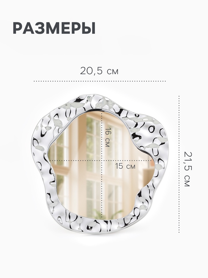 Зеркало настольное, зеркальная поверхность 13×16 см, серебристое 5 фото