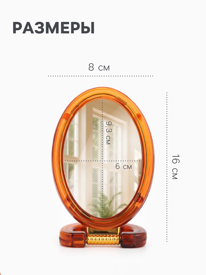 Зеркало настольное, с увеличением, круглое, двустороннее, настенное, 11.5×17.5 см, (d=9 см), цвет янтарный 4 фото