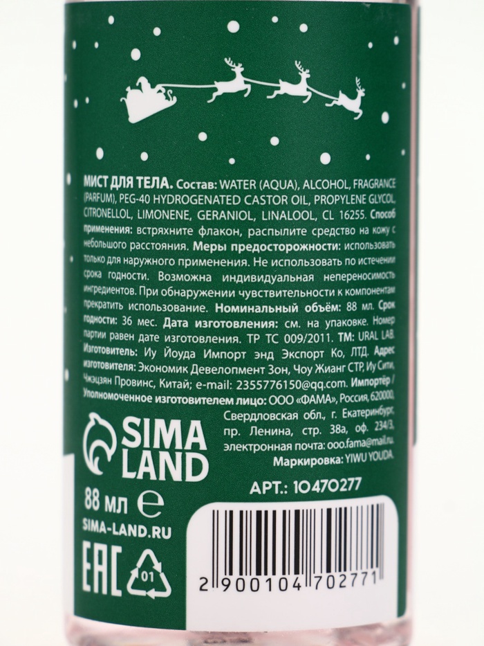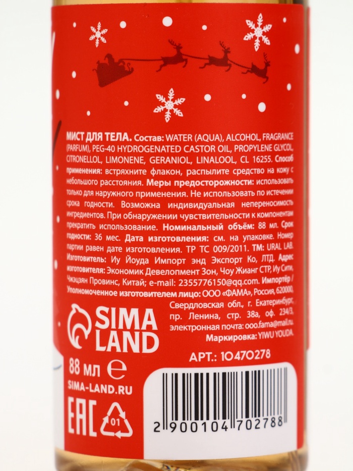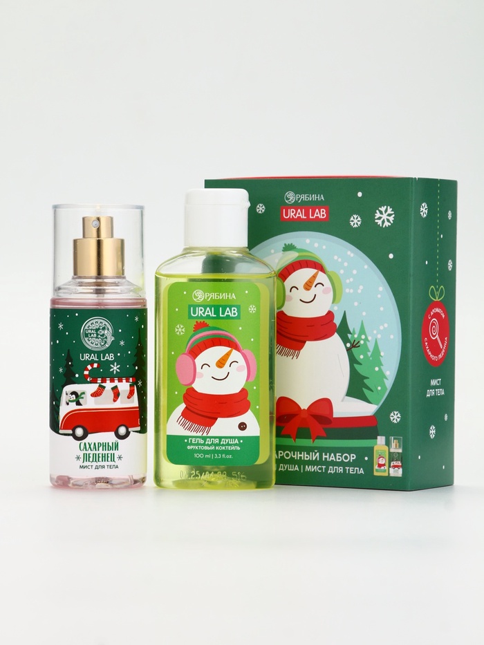 Подарочный набор новогодний «Снеговичок», гель для душа 100 мл и мист для тела, URAL LAB