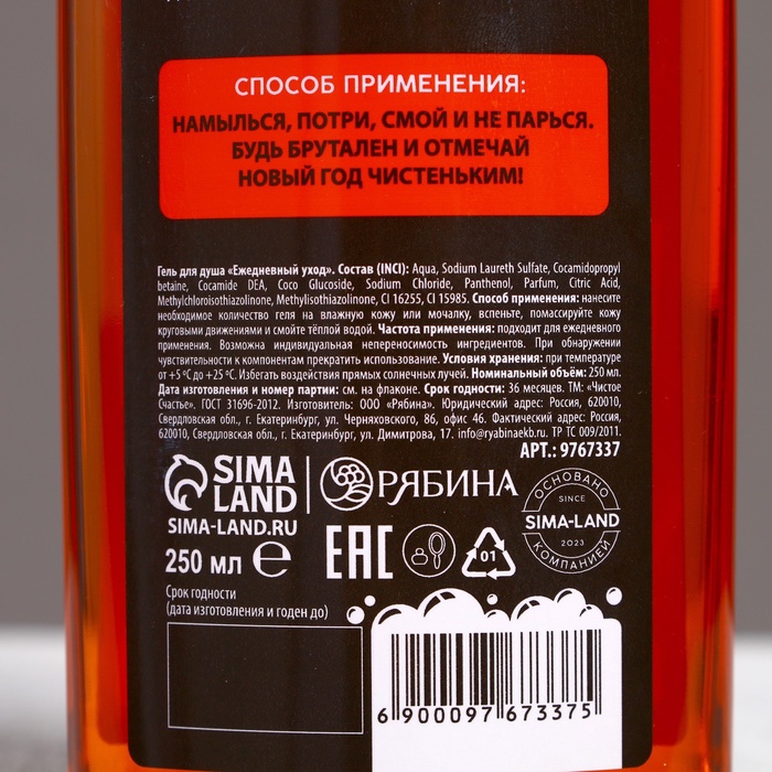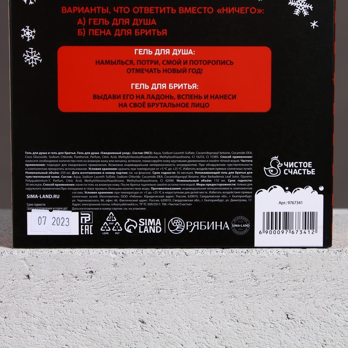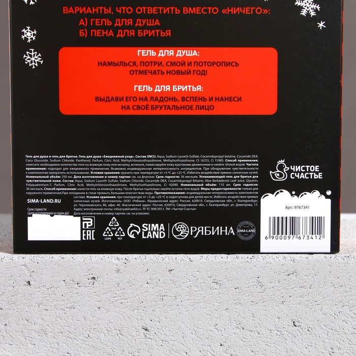 Подарочный набор новогодний, гель для душа 250 мл и гель для бритья 110 мл, Чистое счастье