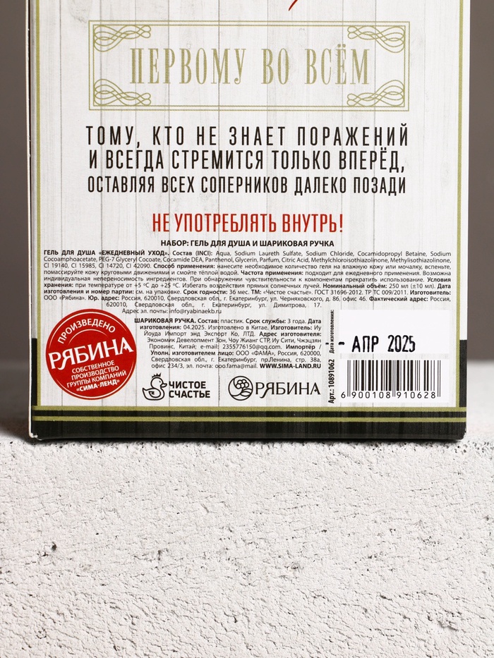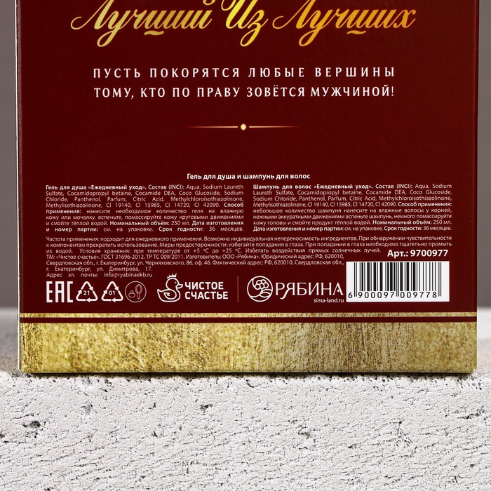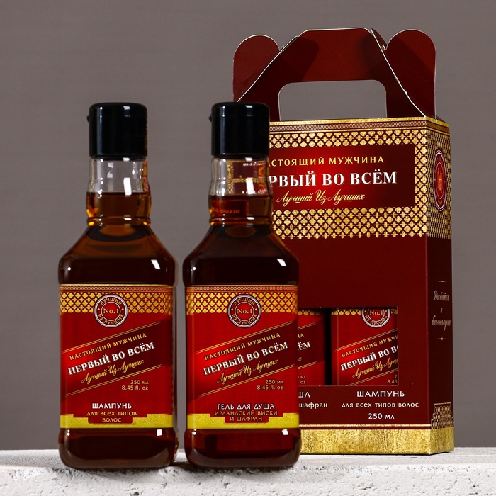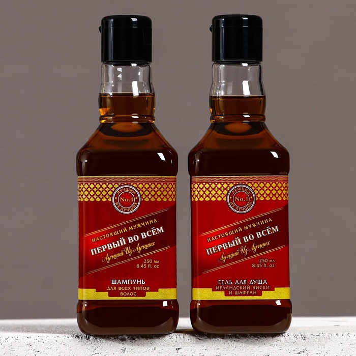 Подарочный набор ЧИСТОЕ СЧАСТЬЕ «Первому во всём»: гель для душа и шампунь для волос виски, 2×250 мл