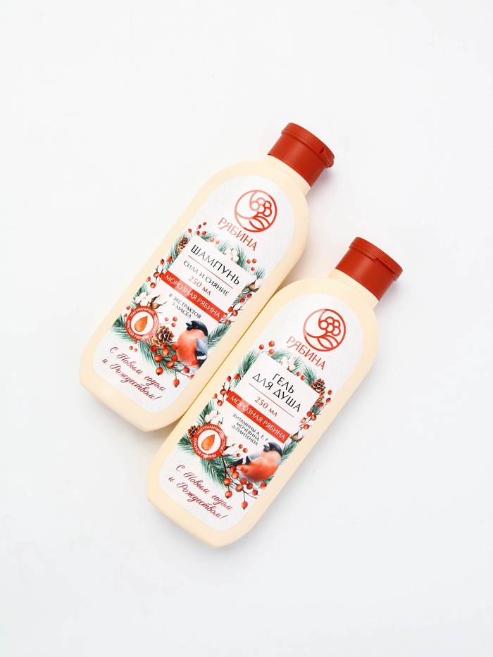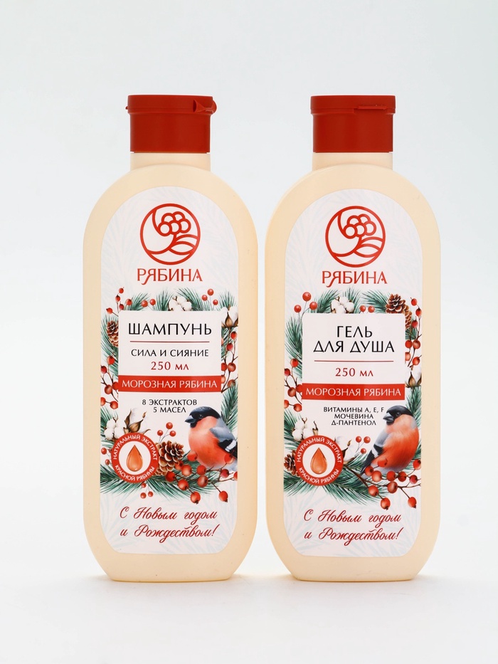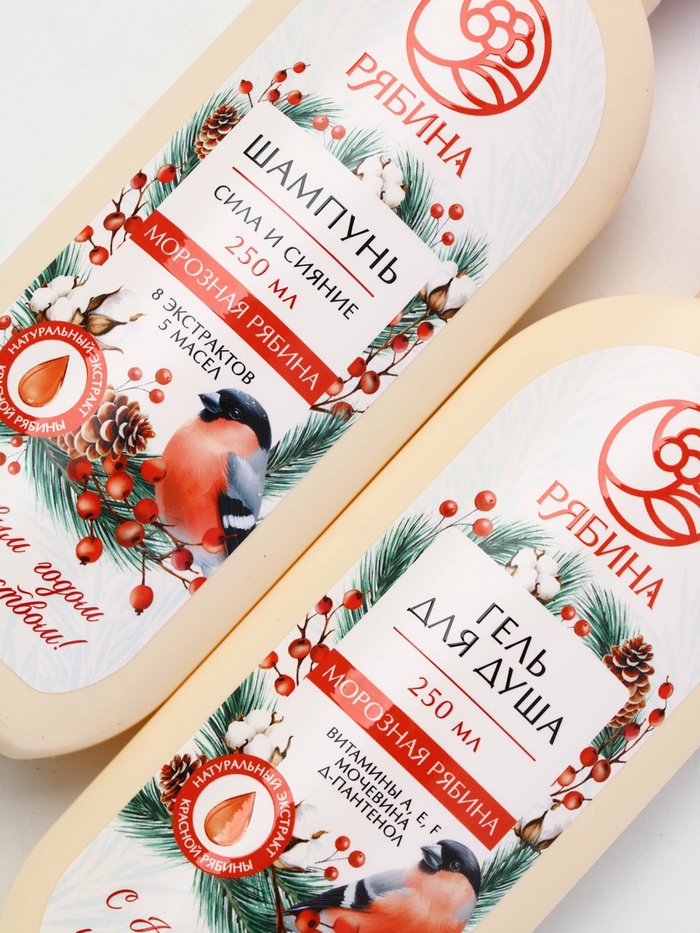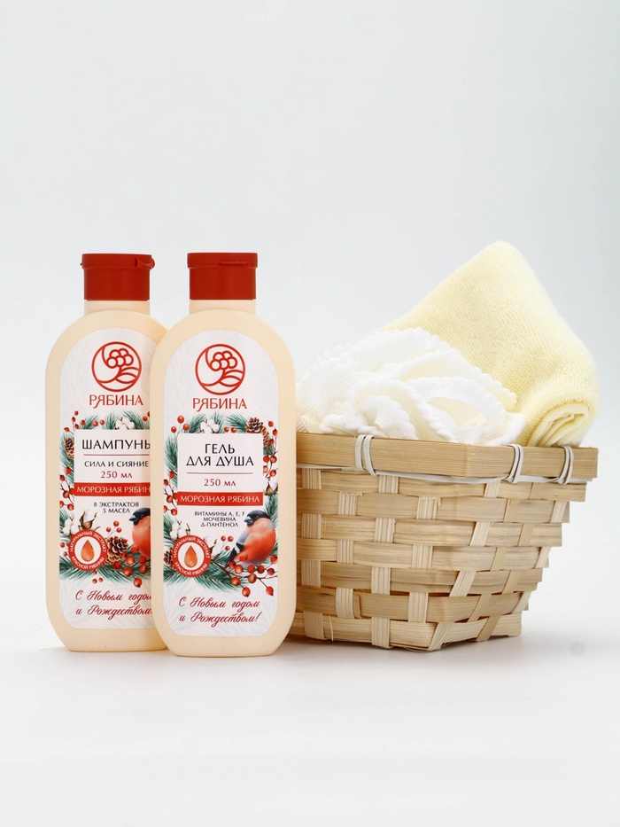 Подарочный набор в деревянной корзине «Рождество», гель для душа, шампунь, полотенце, РЯБИНА