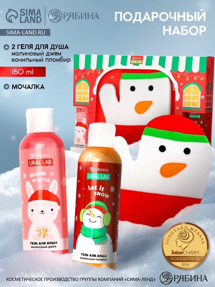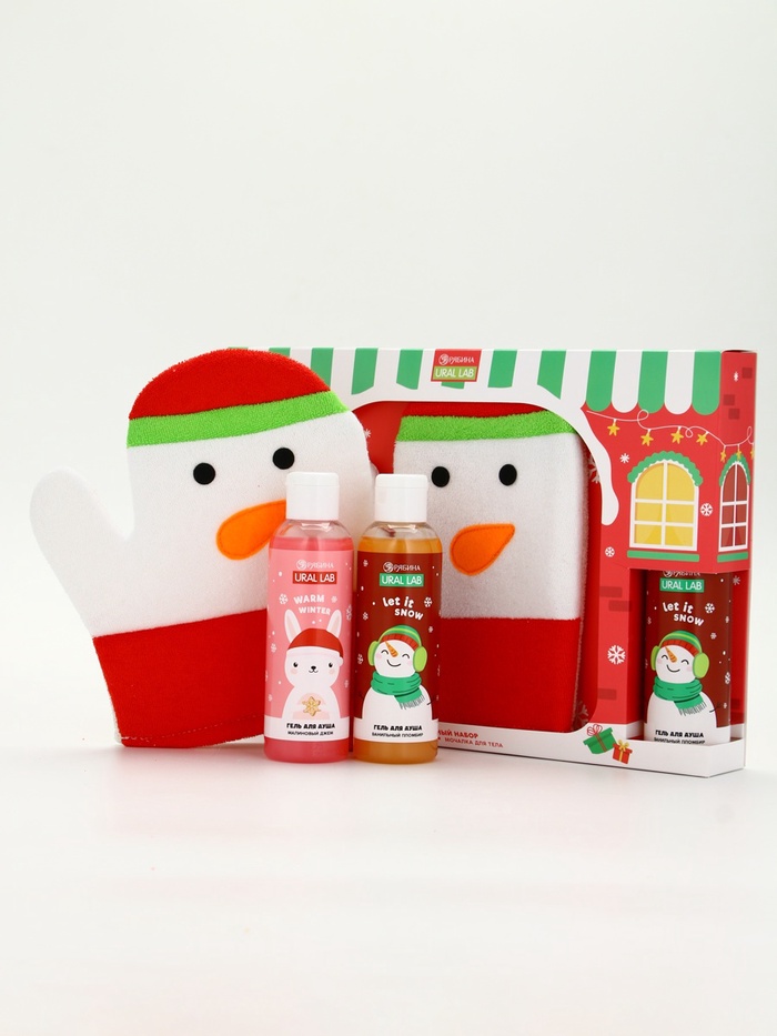 Подарочный набор новогодний «Снеговик», гель для душа 2 шт х 150 мл, мочалка, URAL LAB