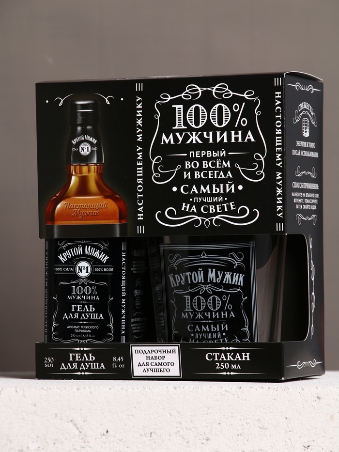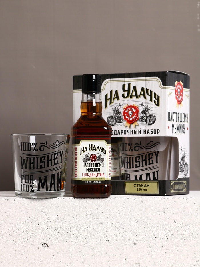 Подарочный набор «Крутой мужик»: гель для душа виски 250 мл и стакан для виски, Чистое счастье