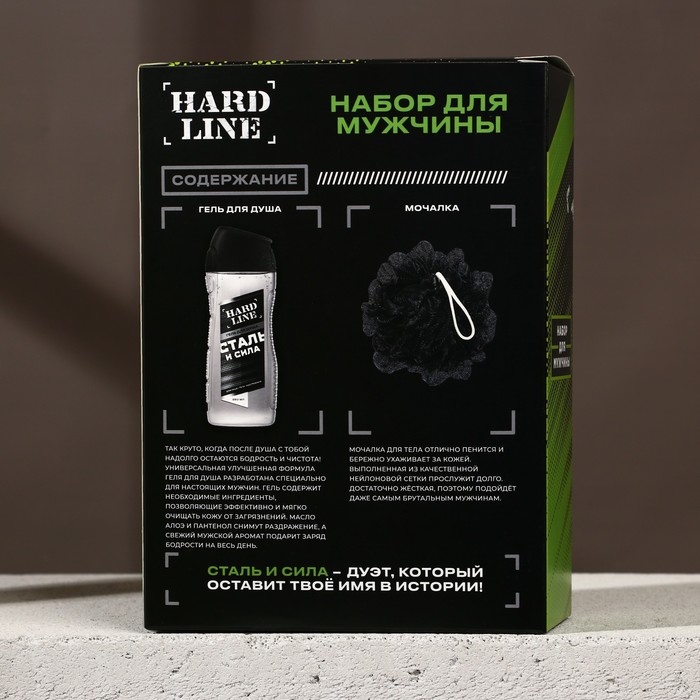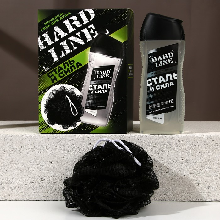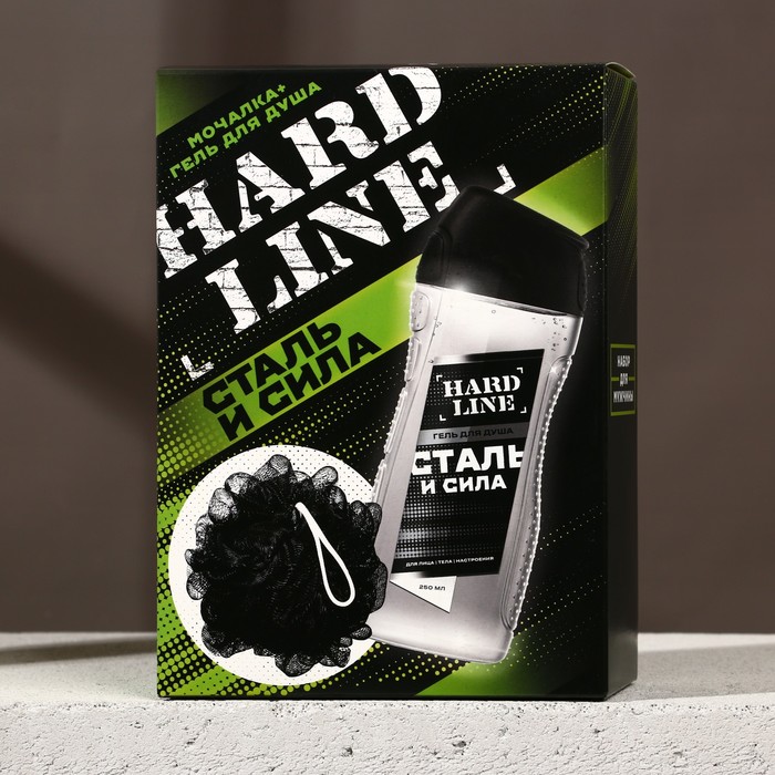 Подарочный набор косметики «Сталь и сила», гель для душа 250 мл и мочалка для тела, HARD LINE