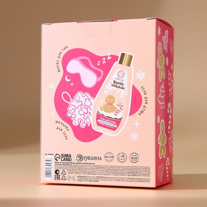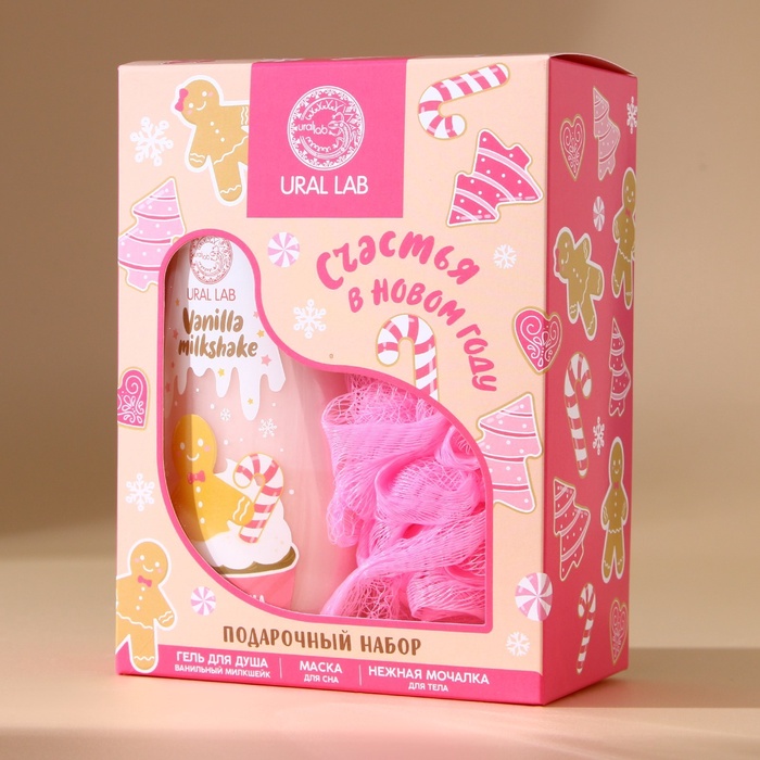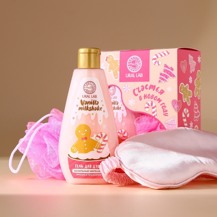 Новогодний подарочный набор косметики «Счастья в Новом году»: гель для душа 200 мл, мочалка для тела и маска для сна, URAL LAB