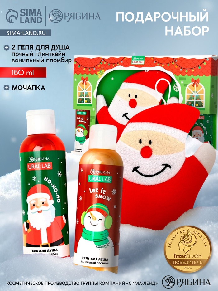 Подарочный набор новогодний «Дед Мороз», гель для душа 2 шт х 150 мл, мочалка, URAL LAB