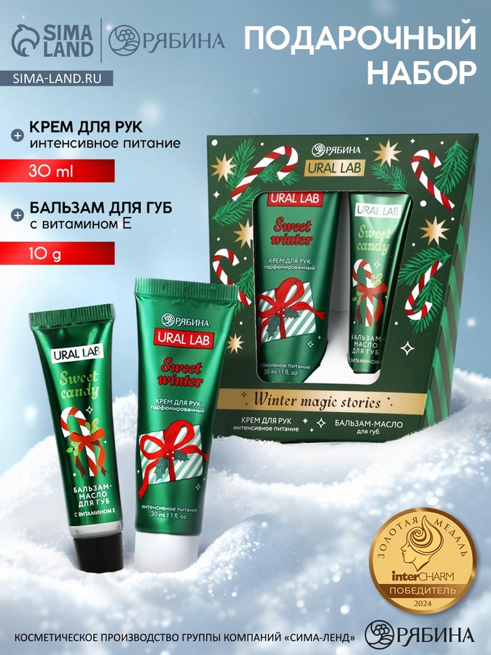 Новогодний подарочный набор косметики Winter Magic Stories: крем для рук и бальзам для губ, URAL LAB