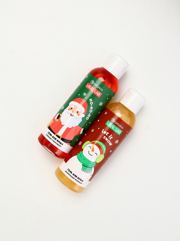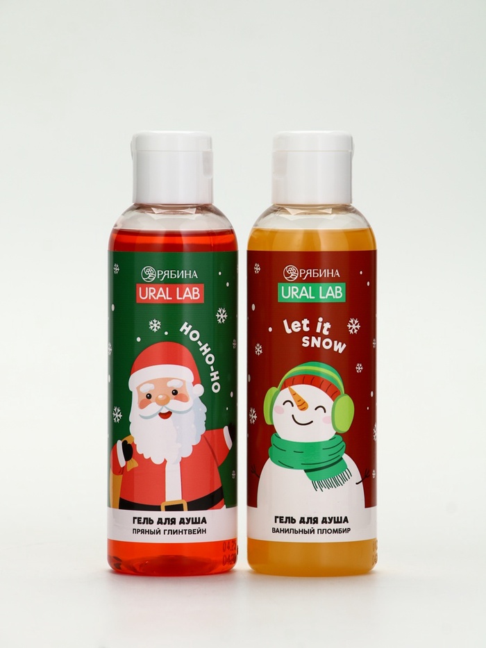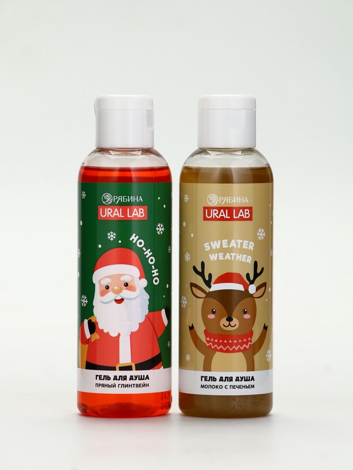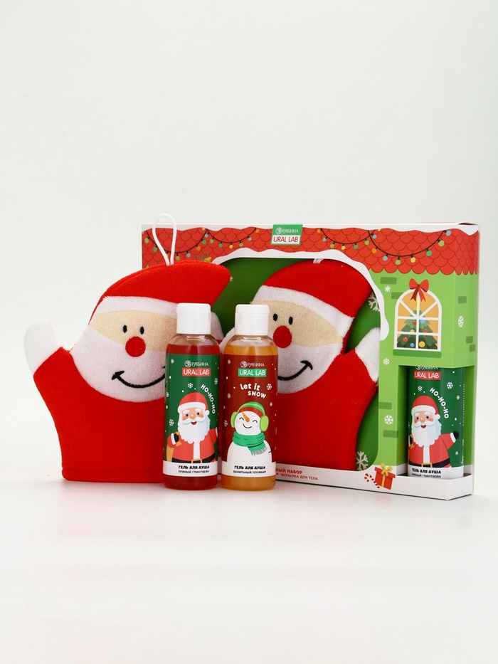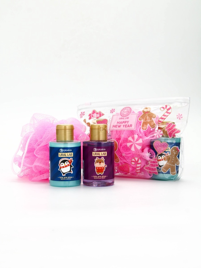 Подарочный набор новогодний, косметичка, гель для душа 2 шт х 100 мл и мочалка для тела, URAL LAB