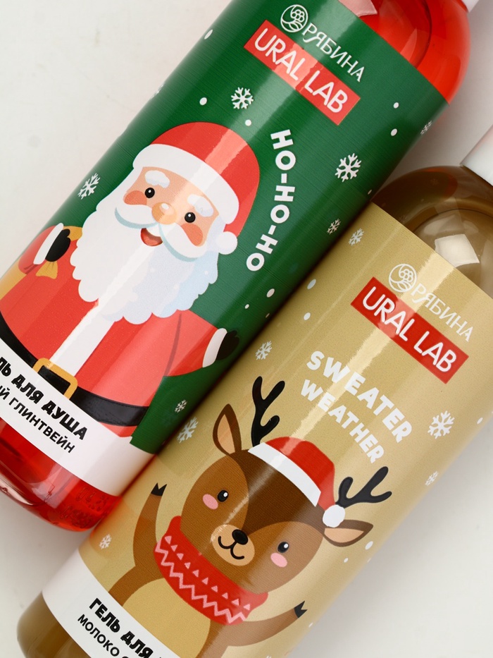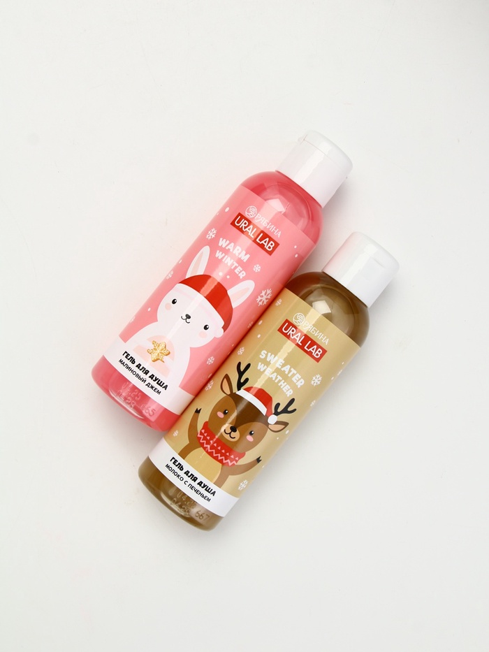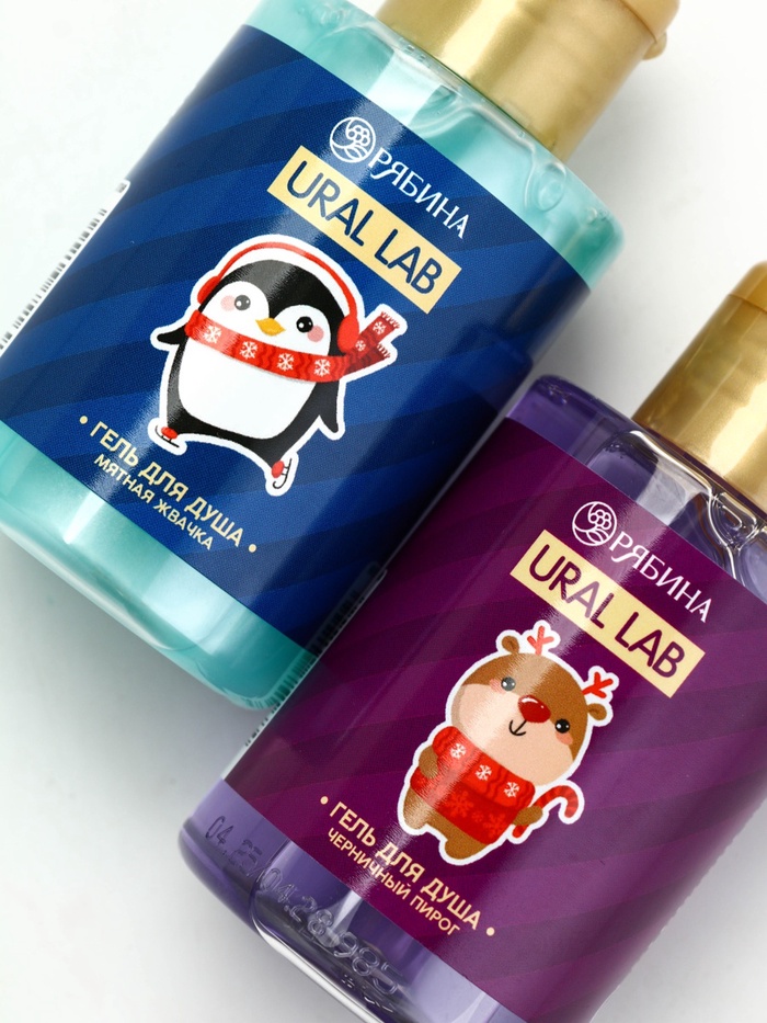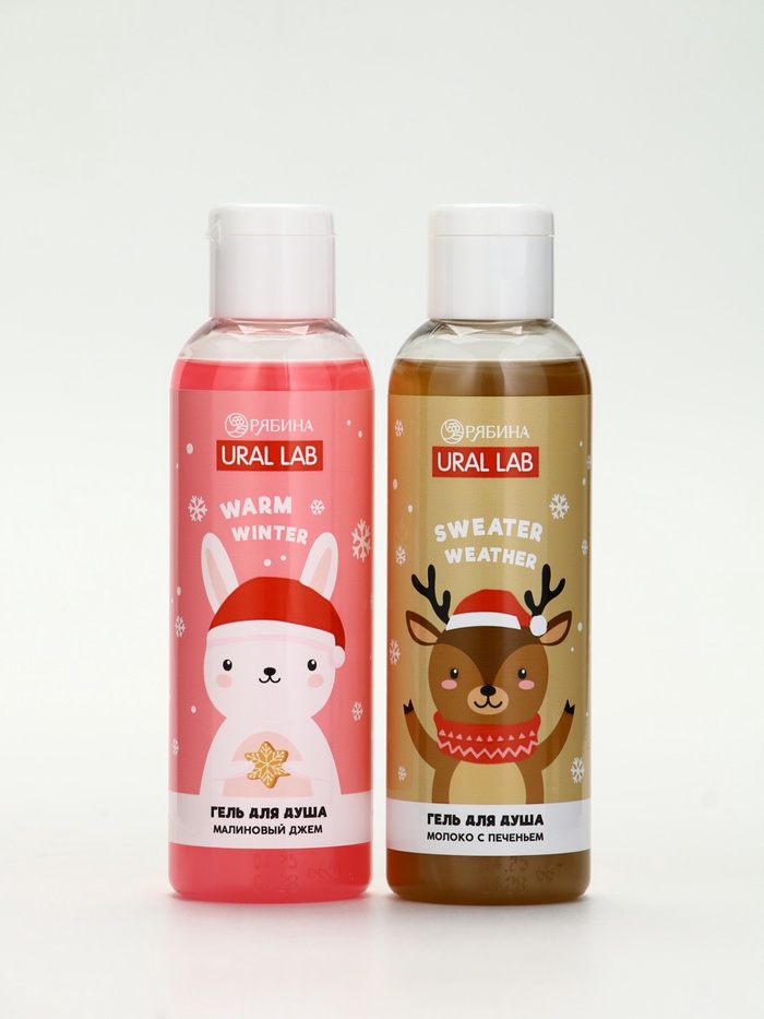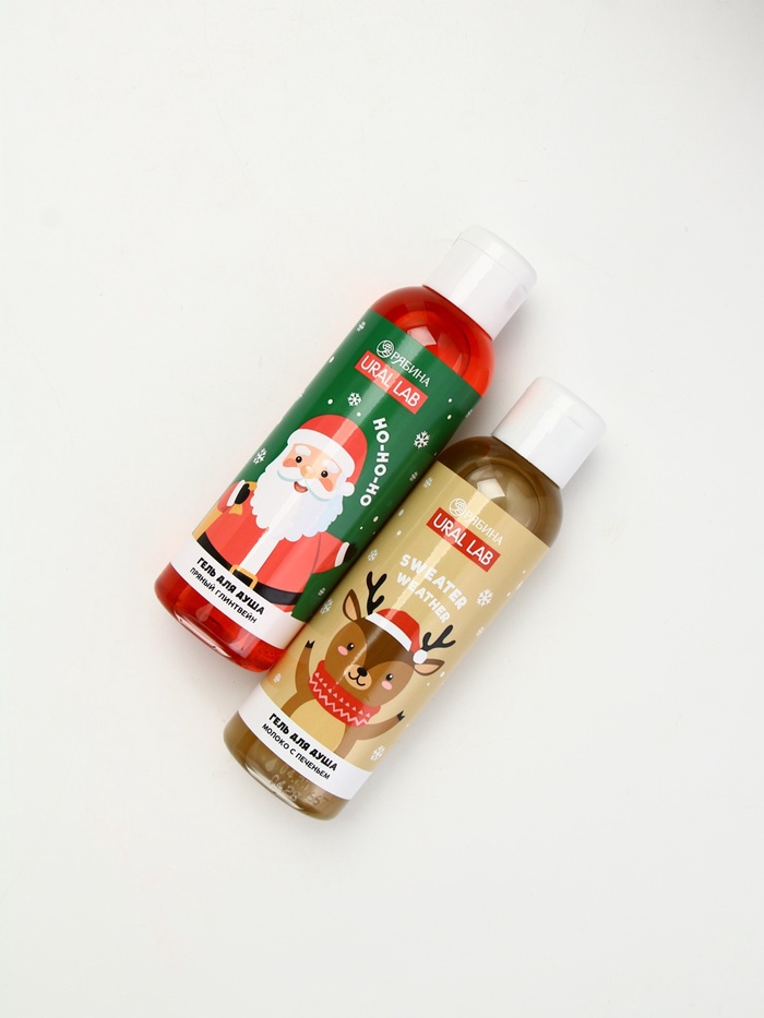 Подарочный набор новогодний, косметичка, гель для душа 2 шт х 100 мл и мочалка для тела, URAL LAB