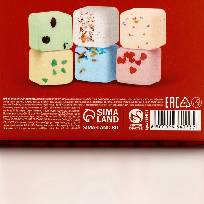 Бомбочки для ванны с добавками «Праздничная посылка», 6×70 г, Чистое счастье