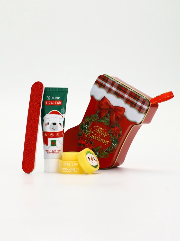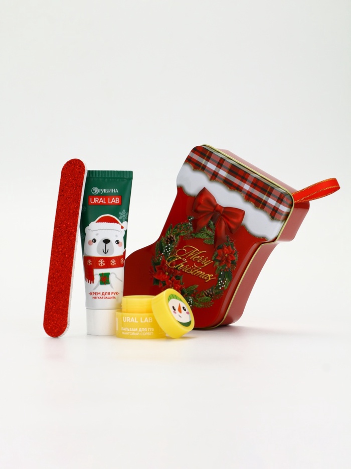 Подарочный набор Happy New Year, бальзам для губ, крем для рук и пилочка, URAL LAB