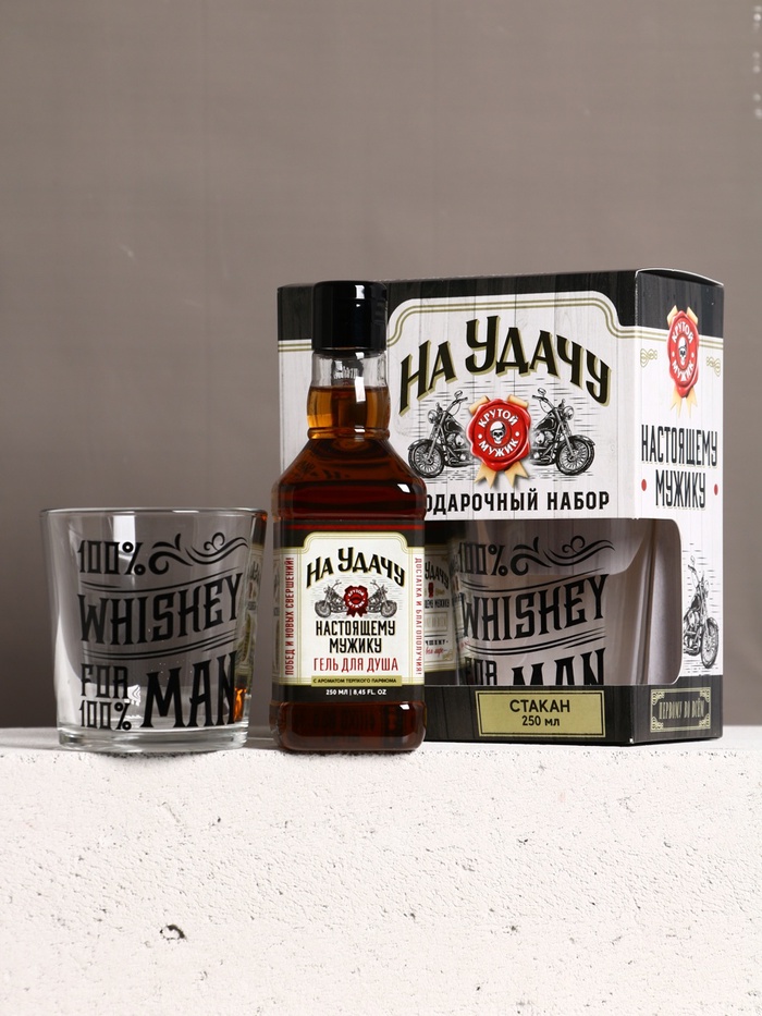 Подарочный набор «На удачу»: гель для душа виски 250 мл и стакан для виски, Чистое счастье