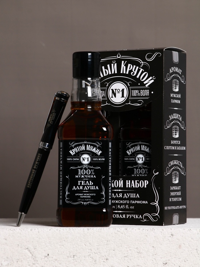 Набор "Самый крутой", гель для душа во флаконе виски и шариковая ручка