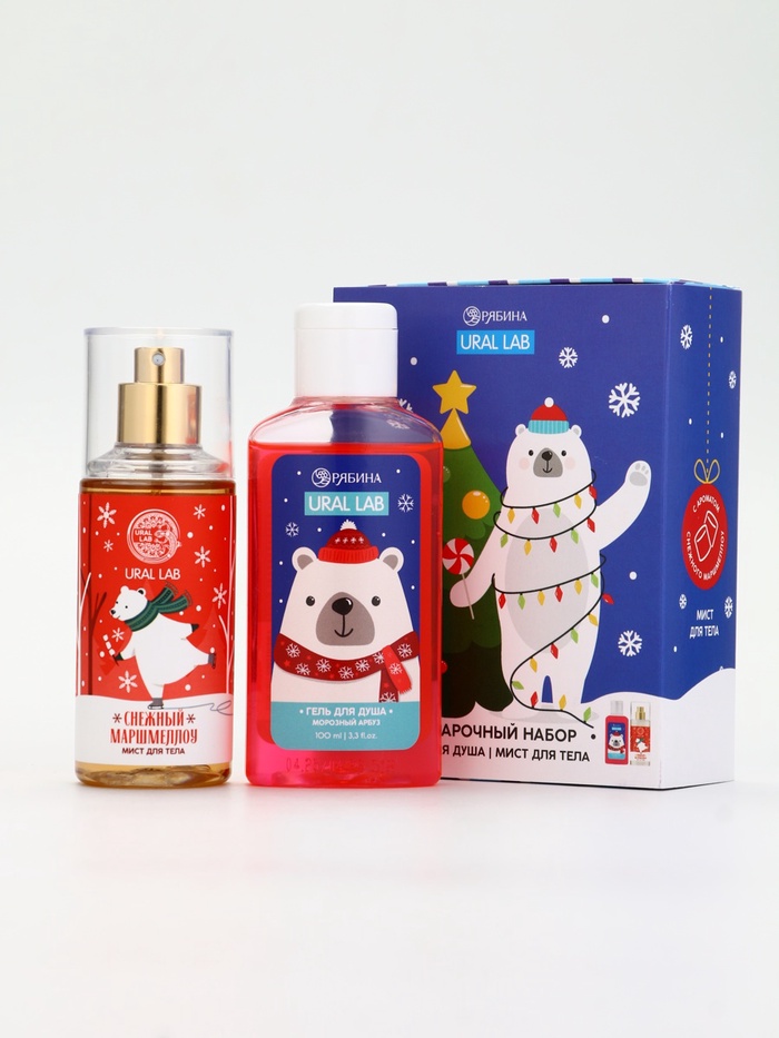 Подарочный набор новогодний «Медвежонок», гель для душа 100 мл и мист для тела, URAL LAB