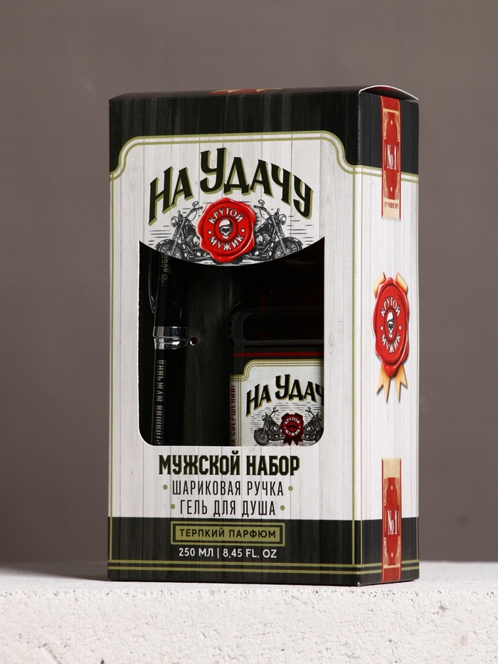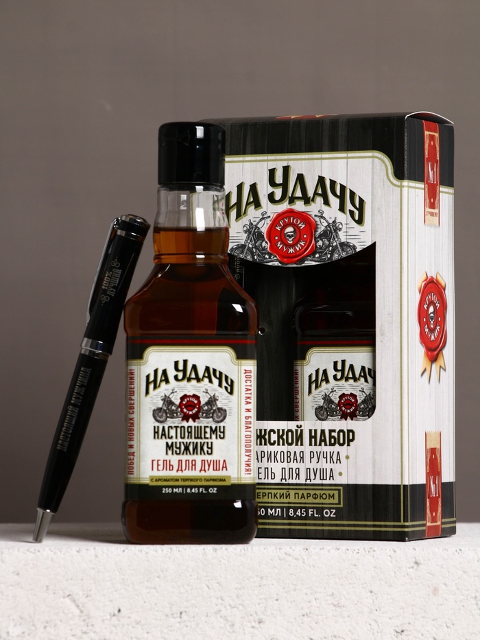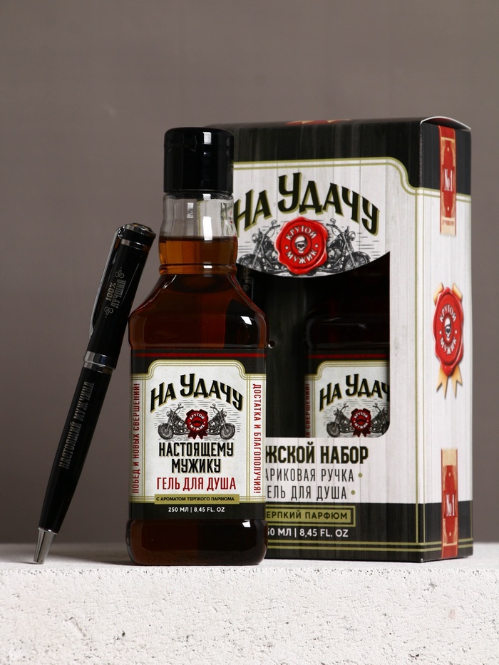 Набор "На удачу", гель для душа во флаконе виски и шариковая ручка