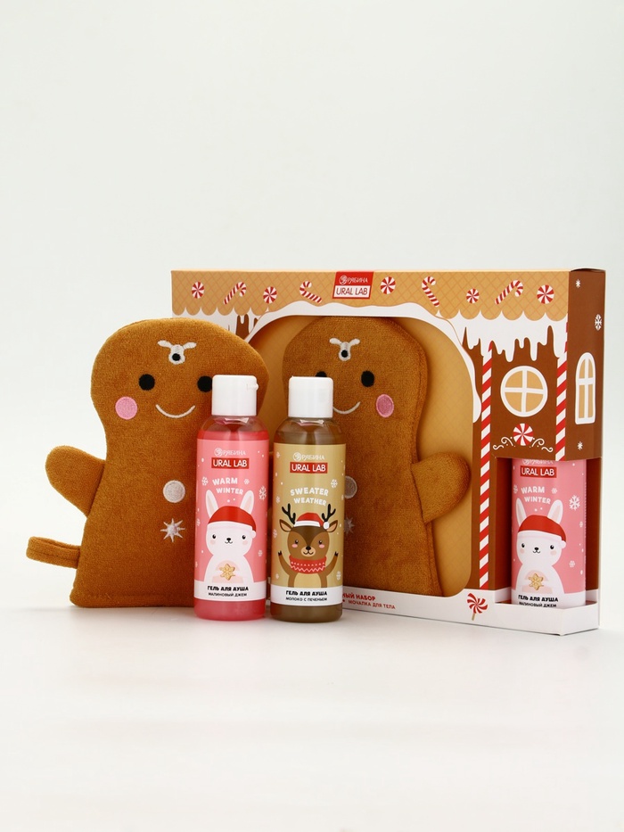Подарочный набор новогодний «Пряник», гель для душа 2 шт. × 150 мл, мочалка, URAL LAB