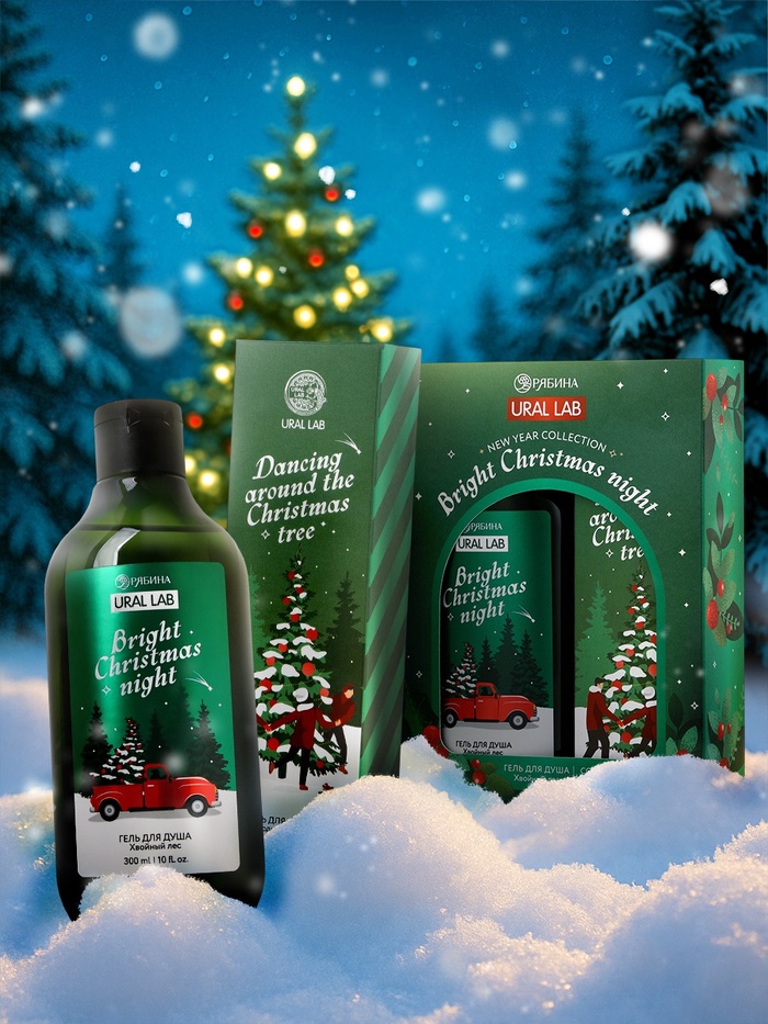 Новогодний подарочный набор косметики Bright Christmas night: гель для душа 300 мл и соль для ванны 200 мл, URAL LAB