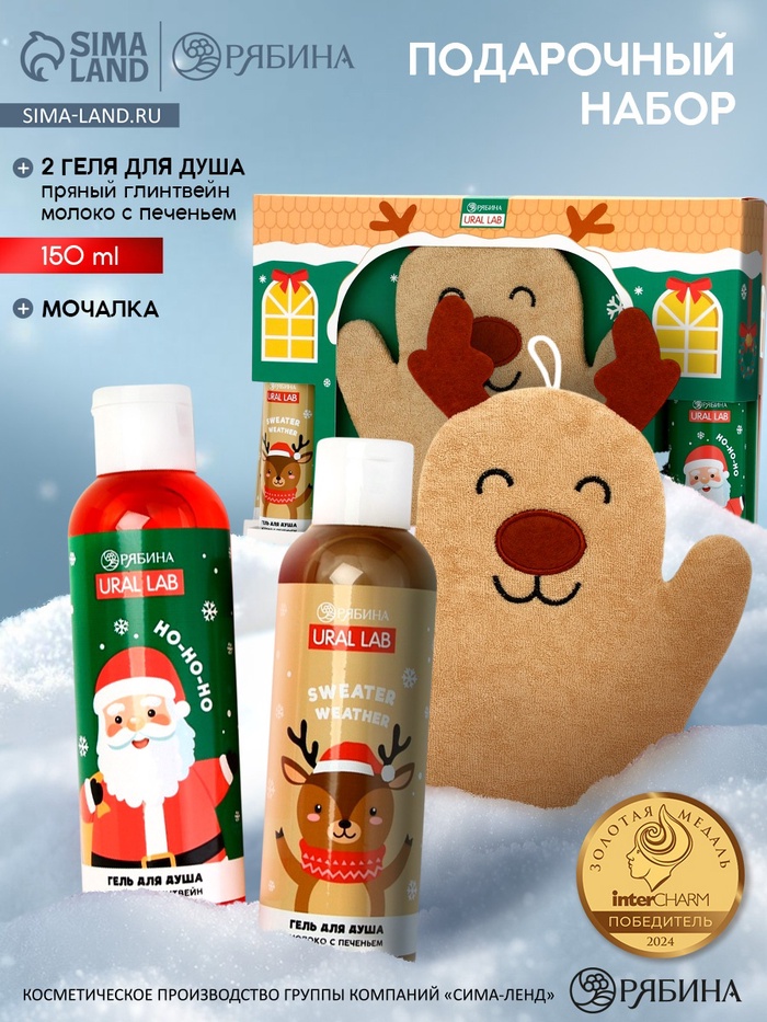 Подарочный набор новогодний «Олень», гель для душа 2 шт х150 мл, мочалка, URAL LAB