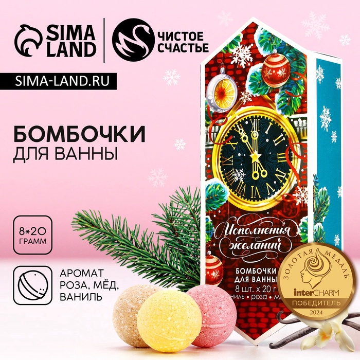 Бомбочки для ванны «Исполнения желаний», аромат роза, мед, ваниль, 8×20 г, Чистое счастье 6 фото