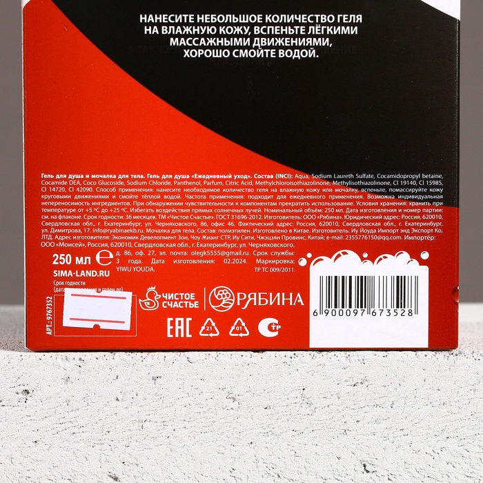 Новогодний подарочный набор косметики «Спокойствие!»: гель для душа 250 мл и мочалка для тела, Чистое счастье 9 фото