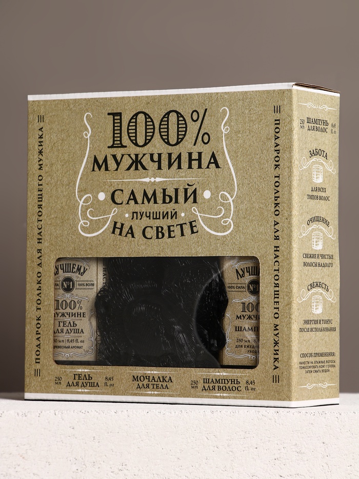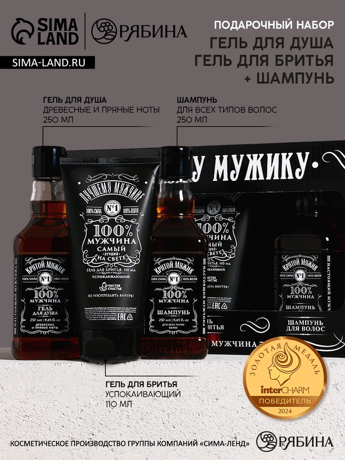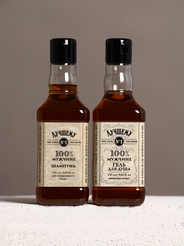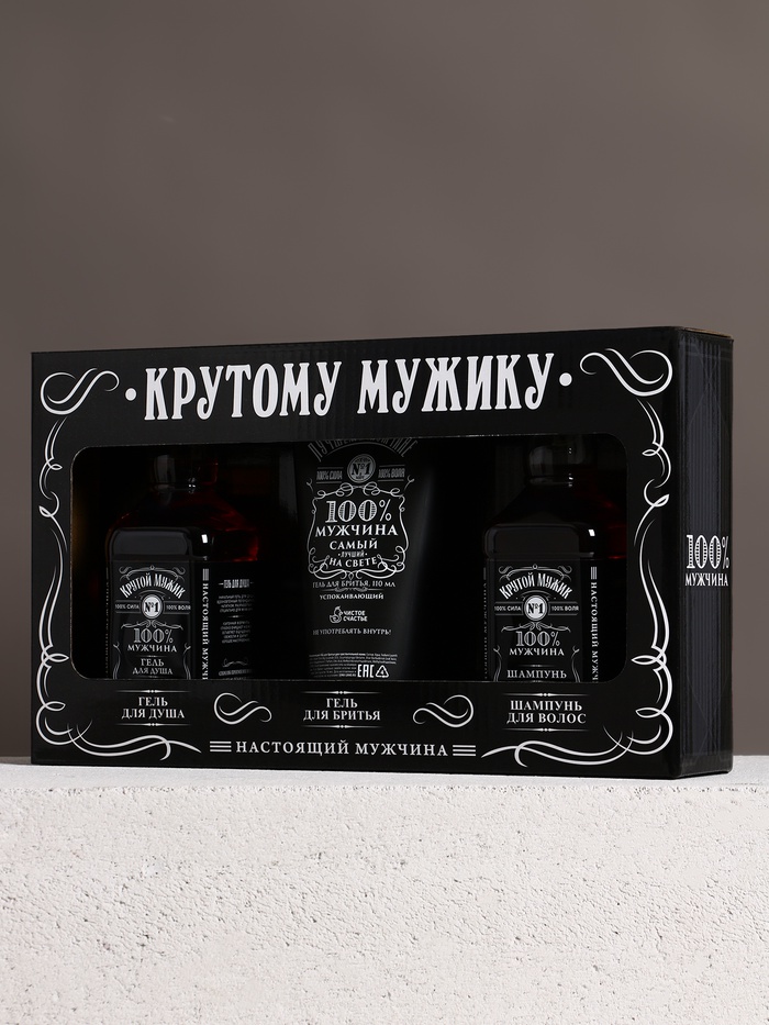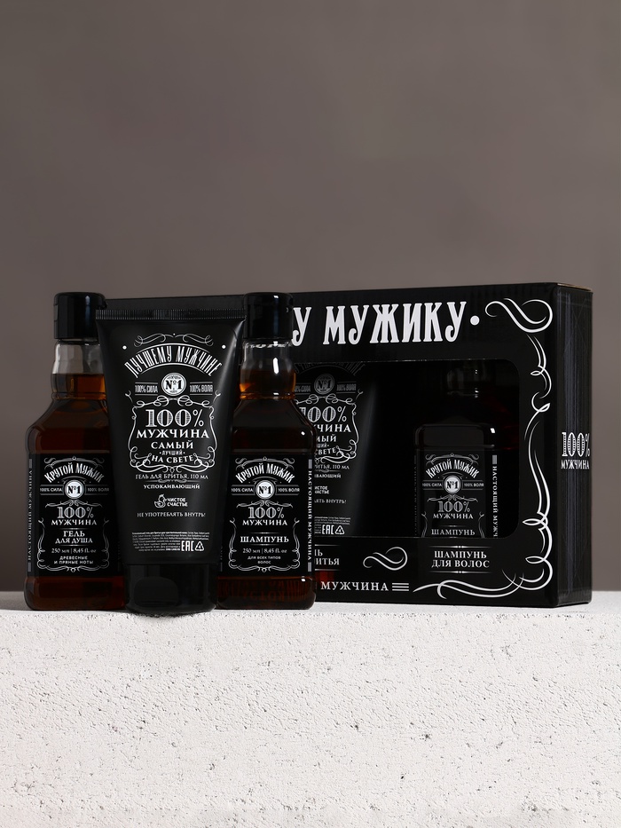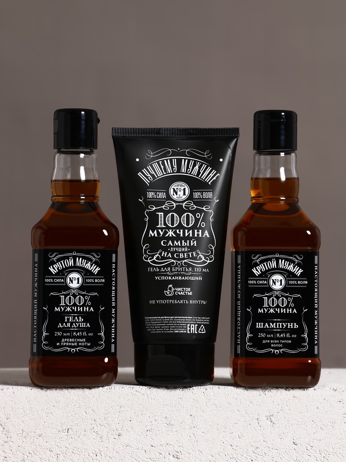Подарочный набор «Самому крутому», гель для бритья 110 мл, гель для душа и шампунь для волос виски, 2×250 мл, Чистое счастье 10 фото
