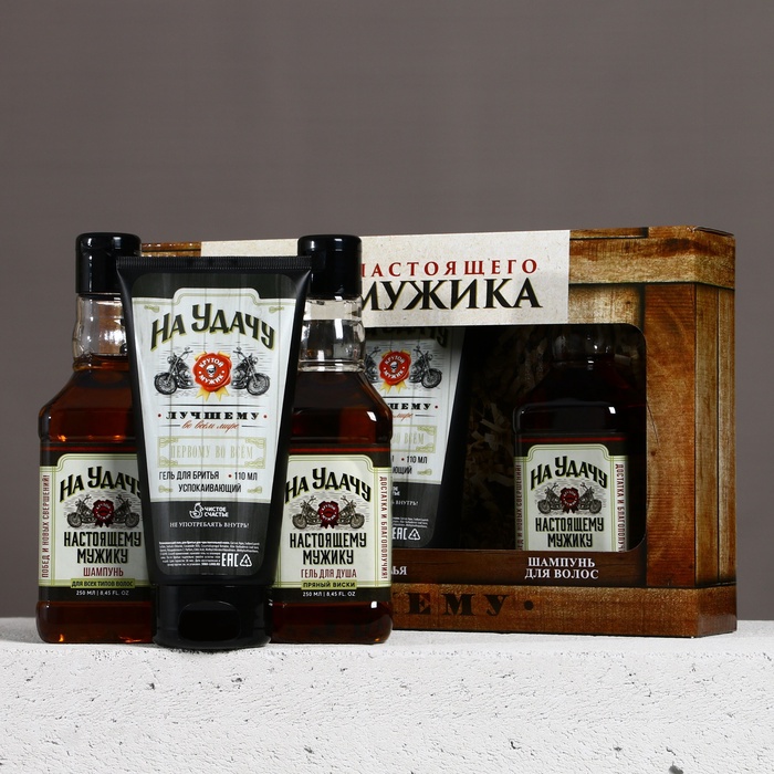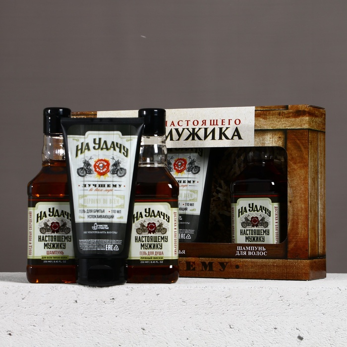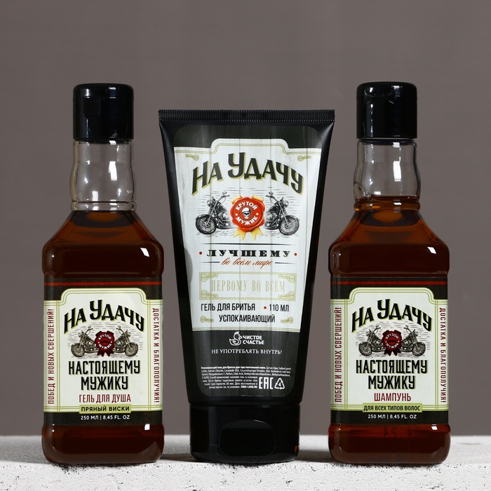 Подарочный набор «На удачу», гель для бритья 110 мл, гель для душа и шампунь для волос виски, 2×250 мл, Чистое счастье 10 фото