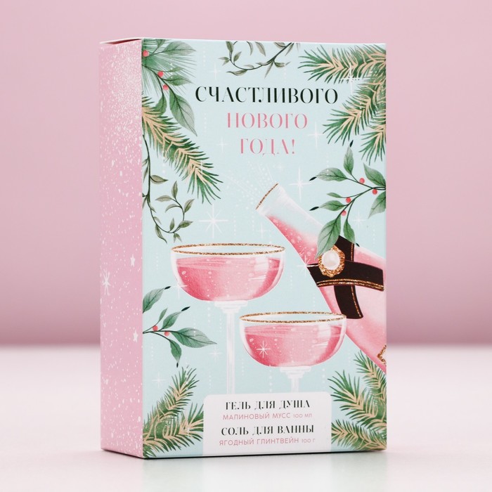 Новогодний подарочный набор косметики «Аромат праздника», гель для душа шампанское 250 мл и крем для рук 30 мл, Чистое счастье 10 фото