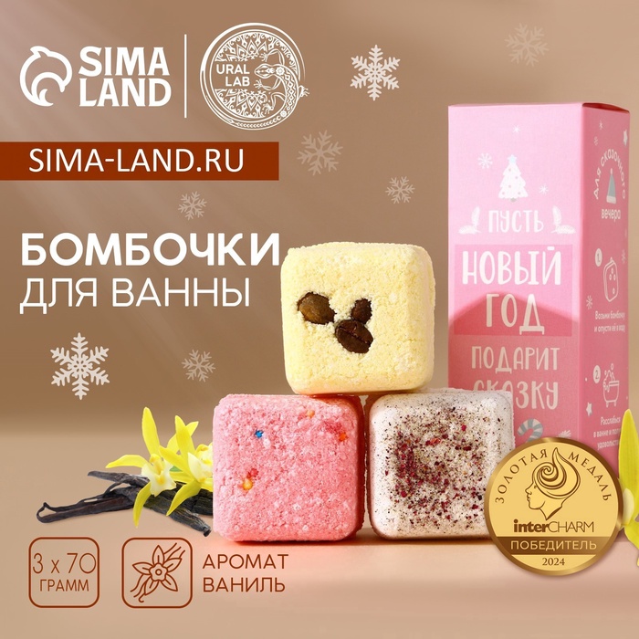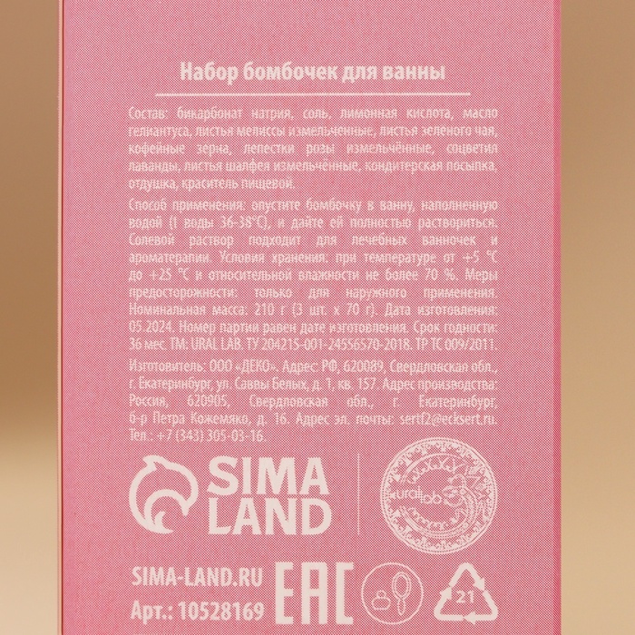 Бомбочки для ванны «С праздником», 3×100 г, аромат пирог, пломбир, пряник, URAL LAB 10 фото