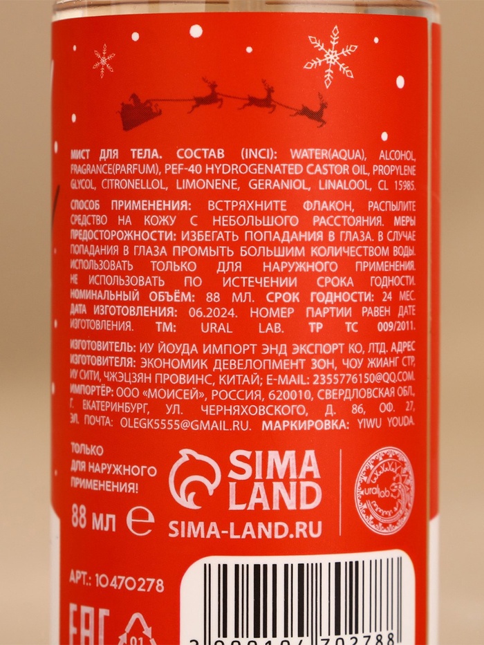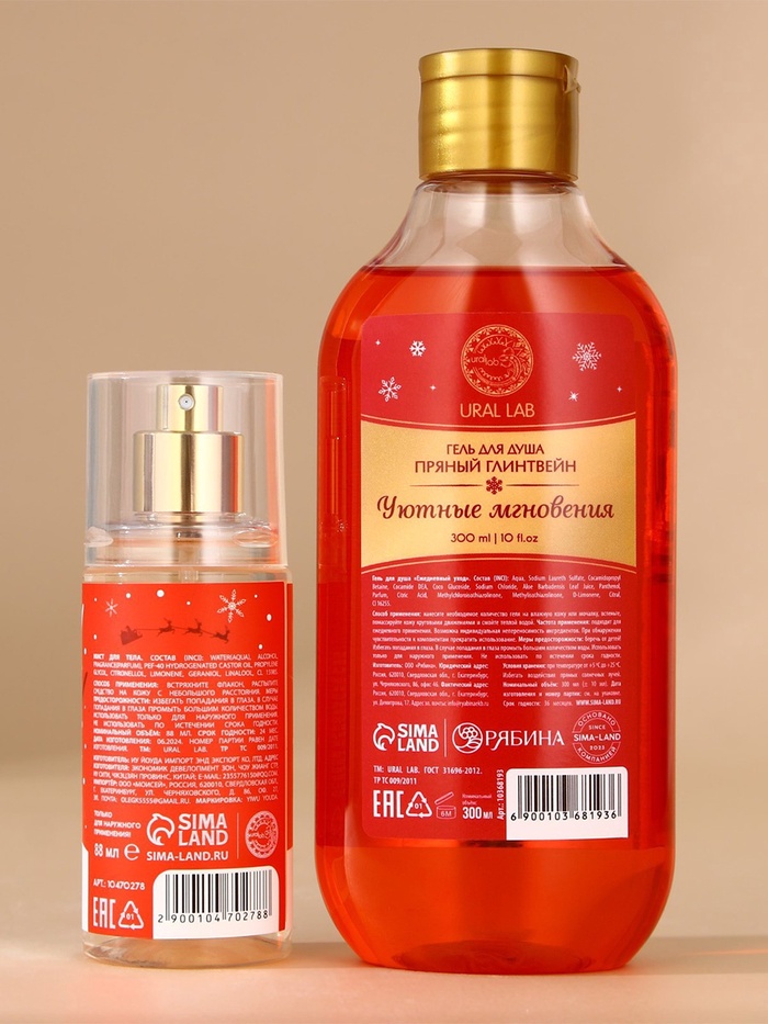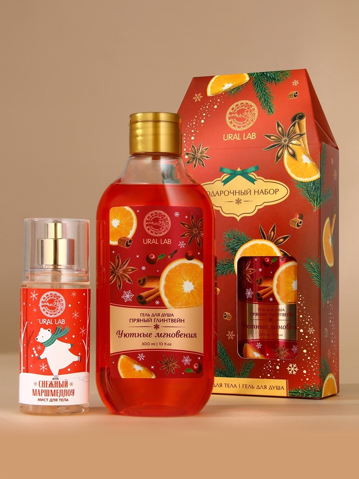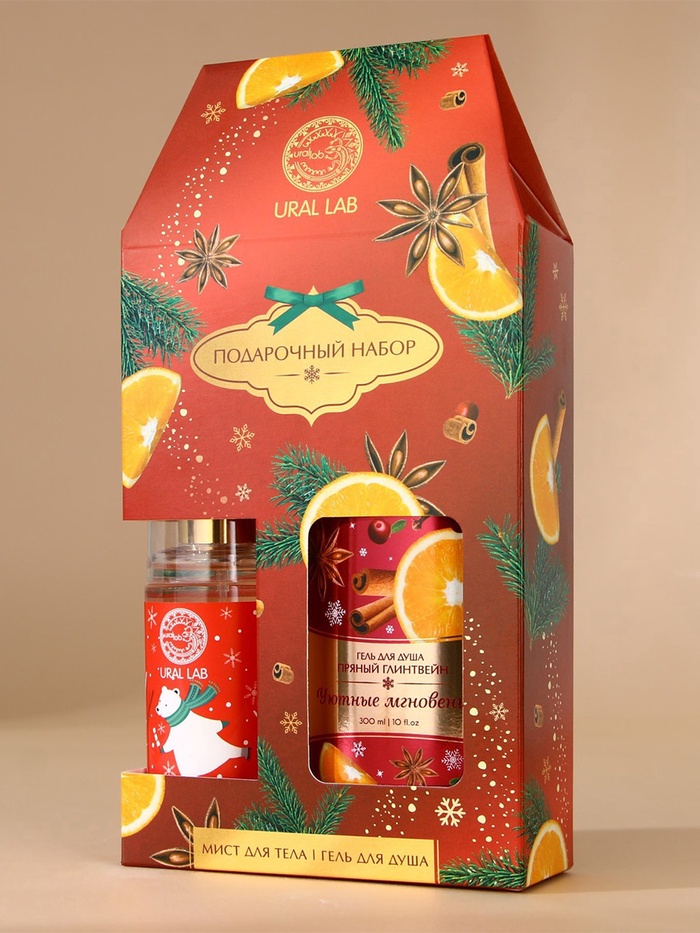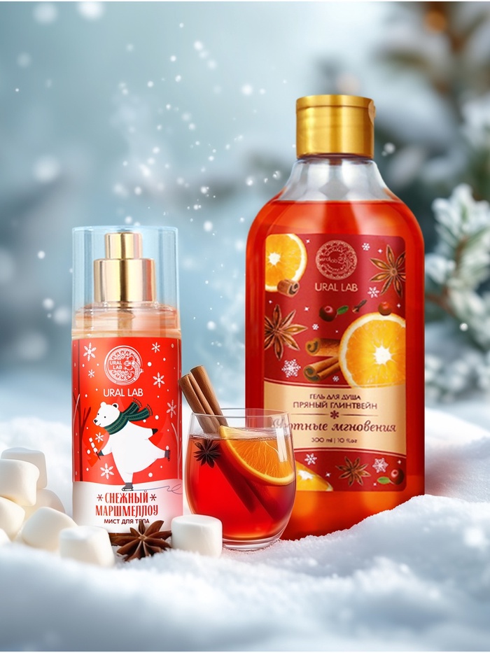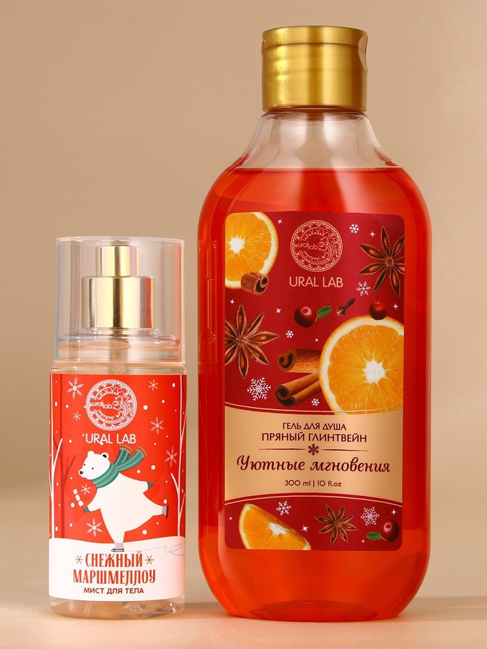 Новогодний подарочный набор косметики «Уютные мгновения»: гель для душа 300 мл и мист для тела 88 мл, URAL LAB 10 фото
