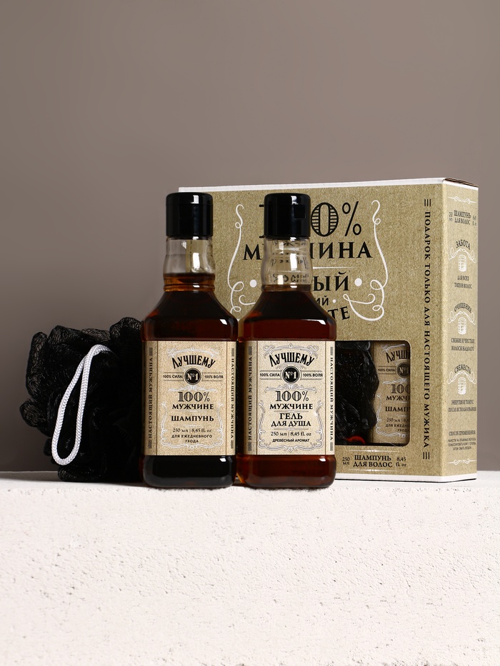 Подарочный набор «Крутой мужик», гель для душа, шампунь для волос и мочалка, 2×250 9 фото