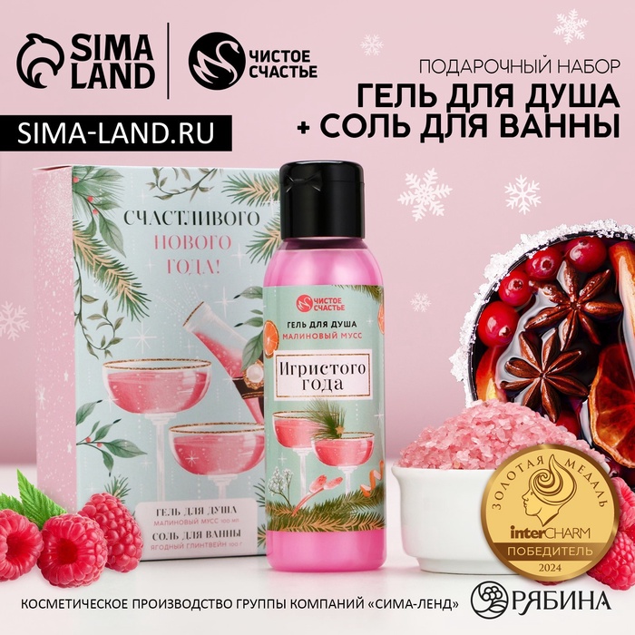 Новогодний подарочный набор косметики «Пряный праздник», гель для душа шампанское 250 мл и крем для рук 30 мл, Чистое счастье 10 фото