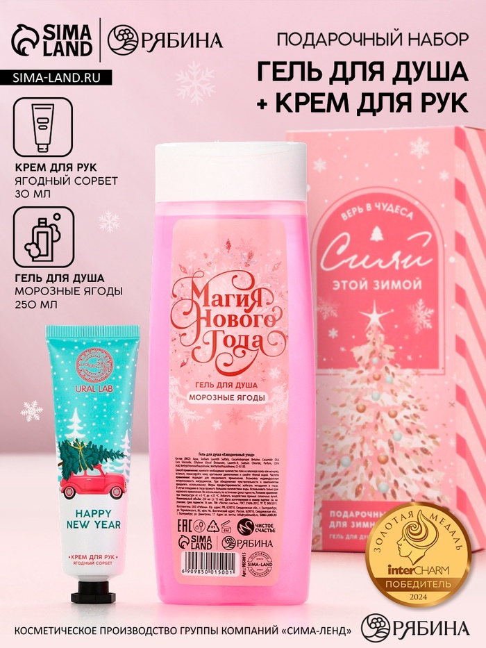 Подарочный набор новогодний «Магия Нового года», гель для душа 250 мл и крем для рук 30 мл, Чистое счастье 10 фото