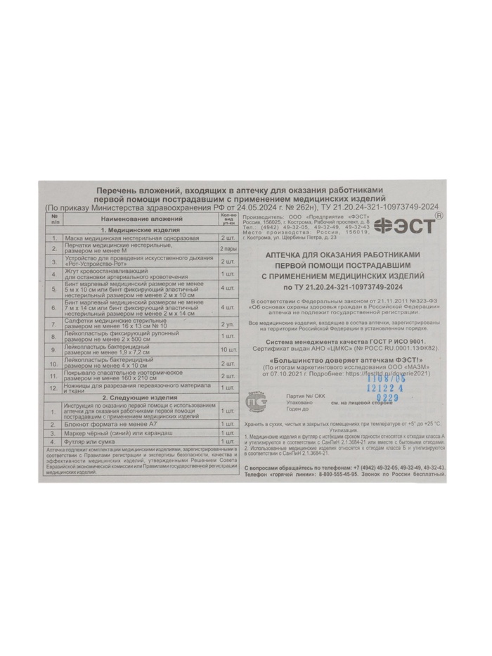 Аптечка для оказания первой помощи работникам «ФЭСТ», футляр №2, приказ 262н 7 фото