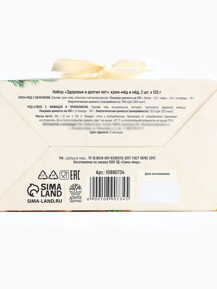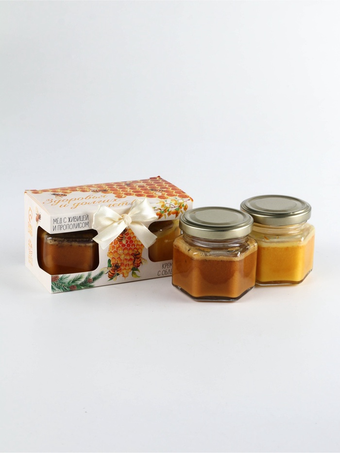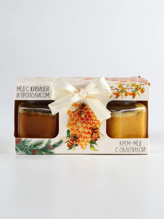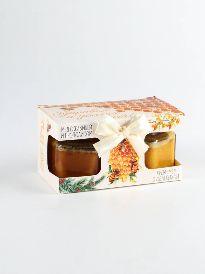 Подарочный набор новогодний «Здоровья и долголетия», мёд с прополисом, крем-мёд с облепихой 7 фото