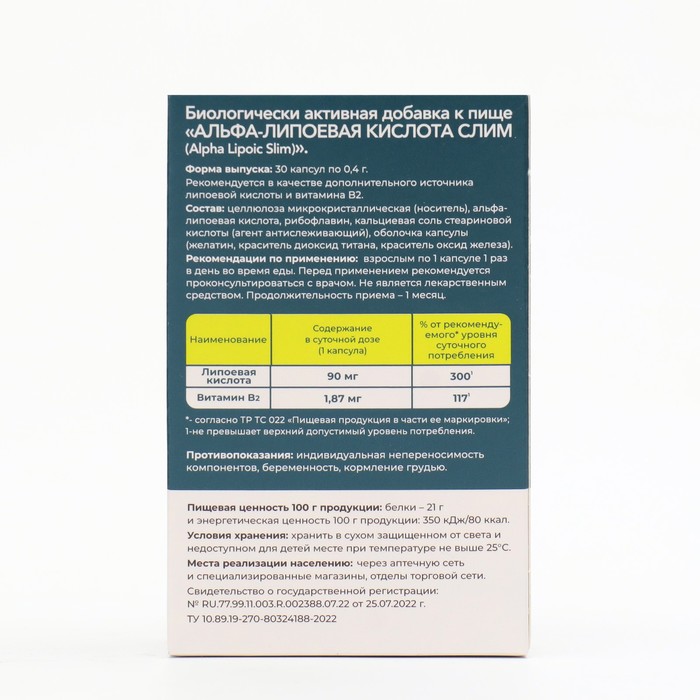Альфа-липоевая кислота, 30 капсул по 400 мг 3 фото