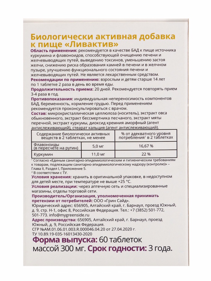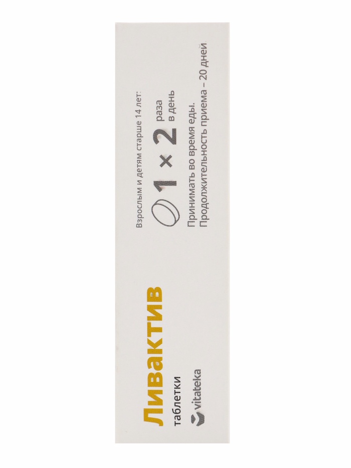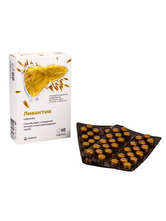 Ливактив «ВИТАТЕКА» таблетки, для очищения печени и желчевыводящих путей, 60 шт., 300 мг 6 фото