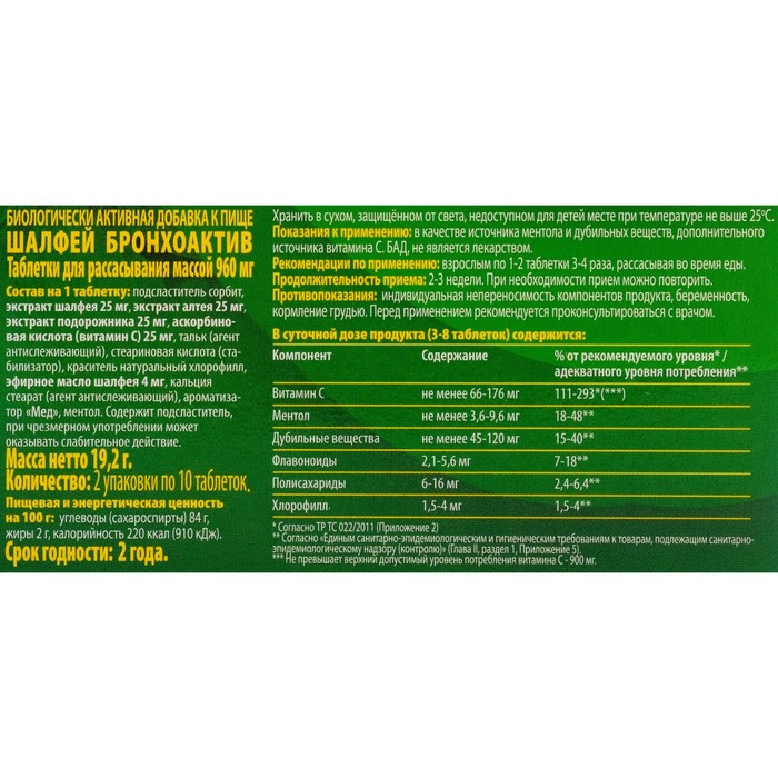 Бронхоактив шалфей, таблетки для рассасывания, 20 штук 3 фото