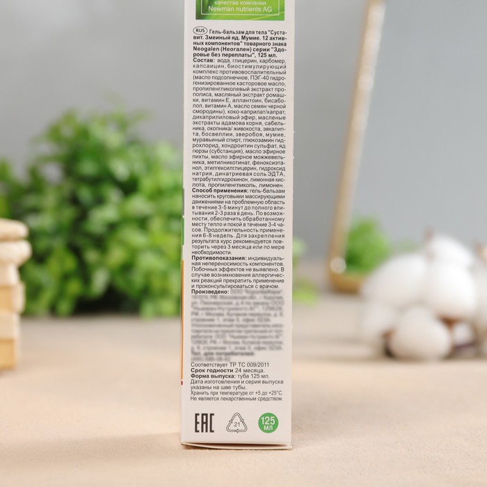 Гель-бальзам для тела «Суставит Змеиный яд» с мумием, 125 мл 4 фото