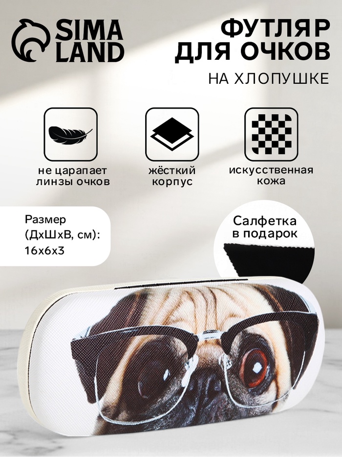 Футляр для очков на хлопушке «Умный мопс», длина 16 см, белый 4 фото