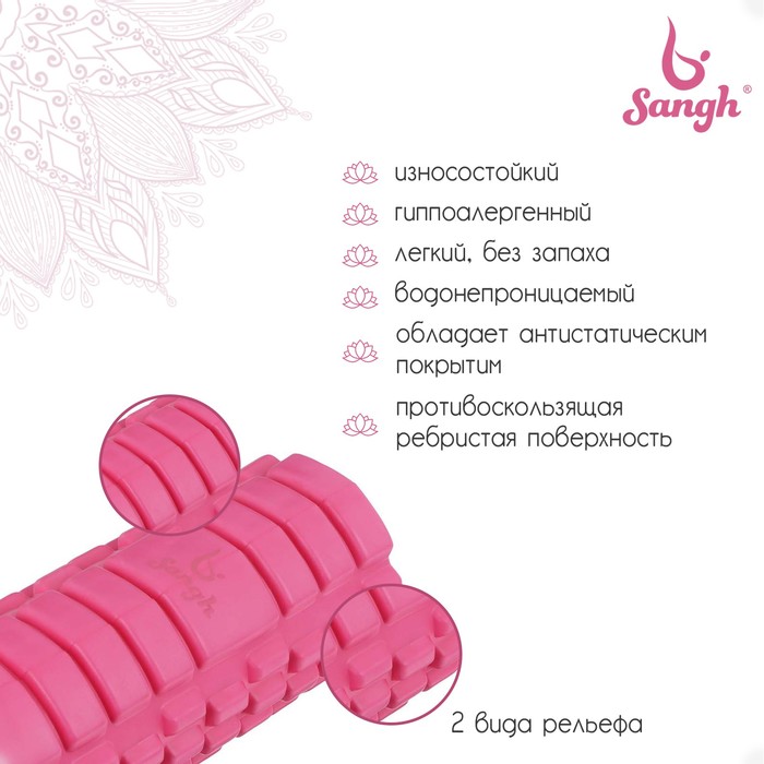 Ролик массажный Sangh, 45×14 см, цвет розовый 7 фото