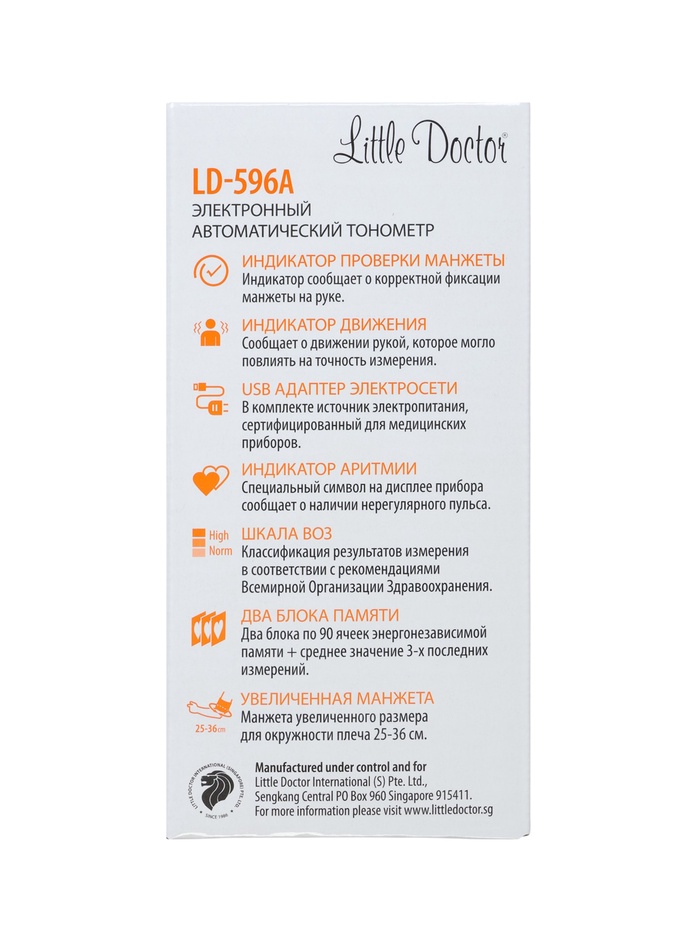 Тонометр Little Doctor LD 596 А, автомат, манжета 25-36 см, 2 блока памяти, с адаптером 10 фото
