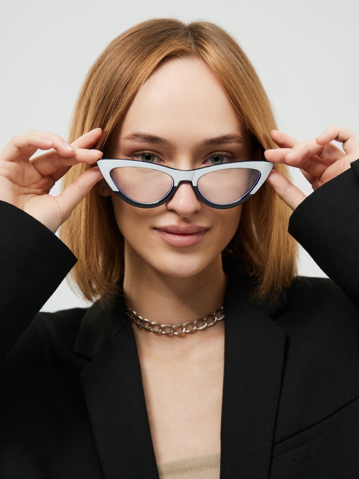 Очки для компьютера женские, имиджевые, ширина 15.2 см, дужка 14 см, линза 6.8×4.5 см, белые 5 фото
