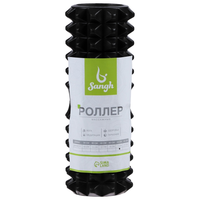 Ролик массажный Sangh, 33×13 см, черный 4 фото