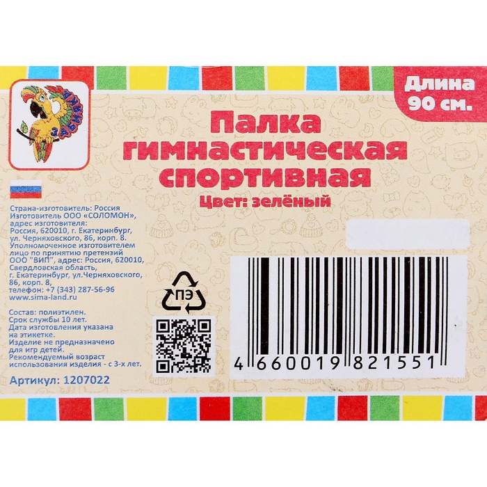 Палка гимнастическая 90 см, цвет зелёный 4 фото