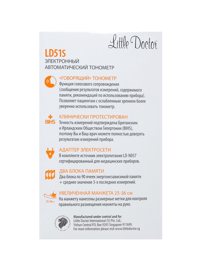 Тонометр Little Doctor LD 51S, автомат, голосовое сопровождение, манжета 25-36 см, с адаптером 10 фото
