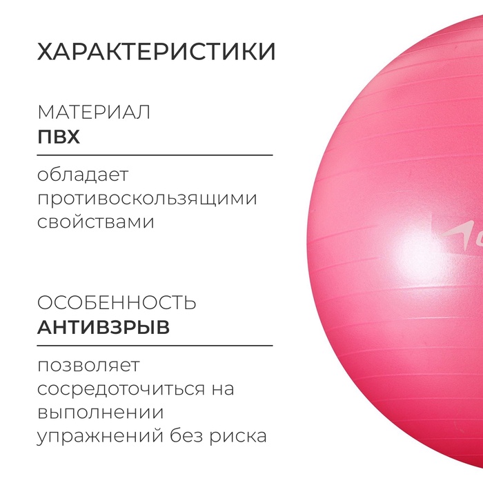 УЦЕНКА Фитбол ONLYTOP, d=75 см, 1000 г, антивзрыв, розовый 9 фото