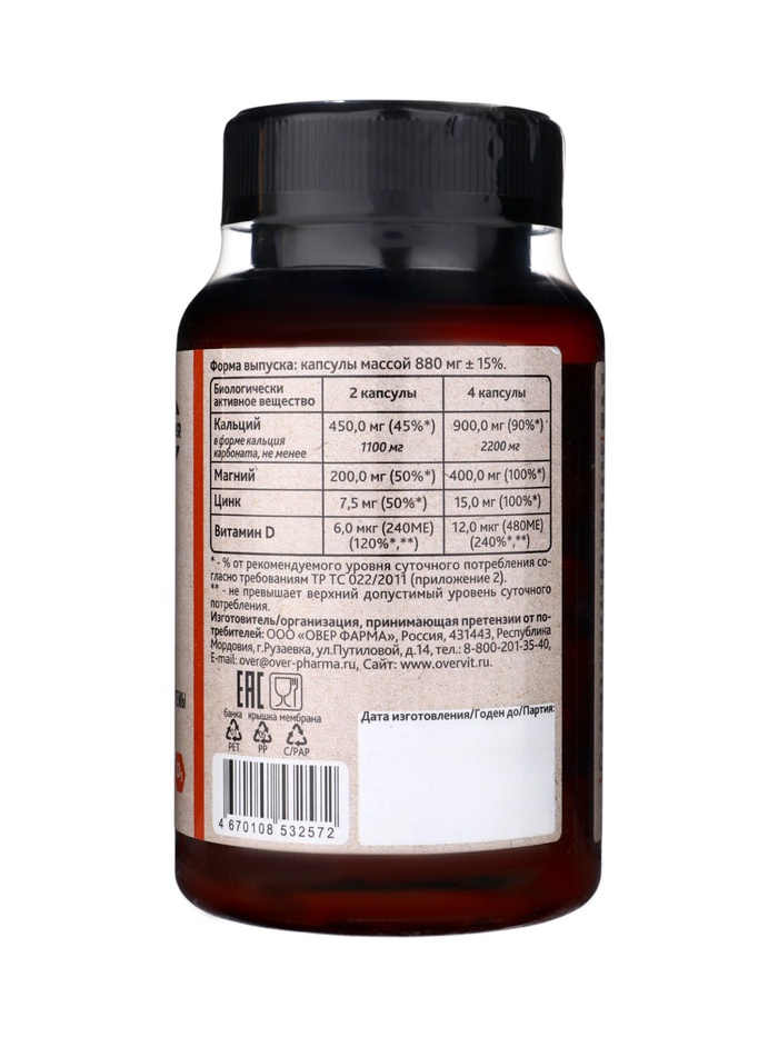 Цинк + Витамин С OVERvit, 60 капсул 3 фото
